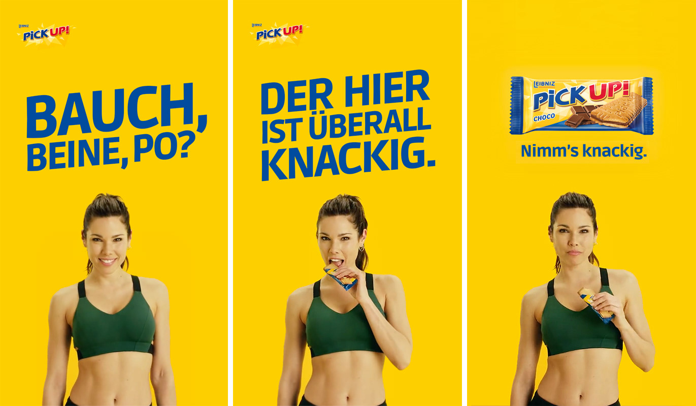 For PiCK UP! we developed a very simple campaign for Germany, Austria and Switzerland. The new Claim “Nimm’s knackig.” encourages people to take things easy and rather have a crunchy PiCK UP! instead of getting upset.