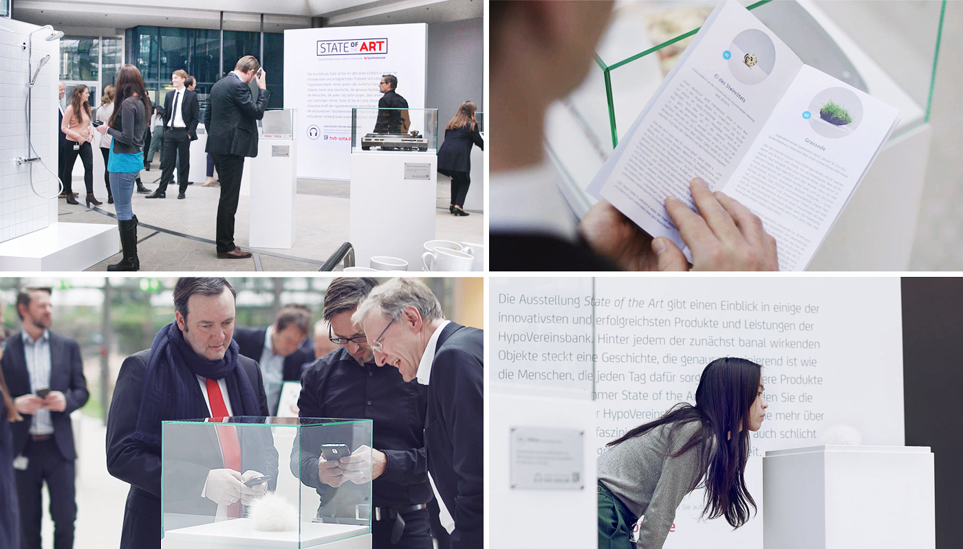 With numerous bizarre exhibits we aroused the curiosity of the employees. Each object was the starting point for a (completely fictitious) story about the invention of the product. The stories were accessible via mobile audio guide, a brochure and videos in the HVB intranet.