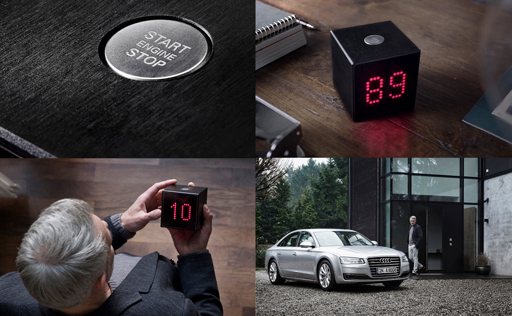 For the launch of the new Audi A8 we developed the Audi Test Drive Cube. It’s a small black box made of Audi materials like aluminium, LEDs and an original start/stop button.