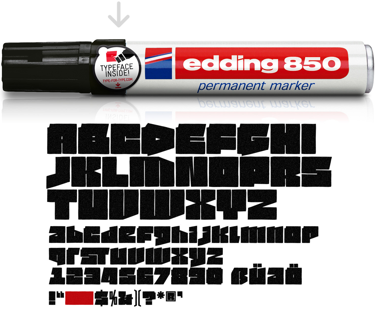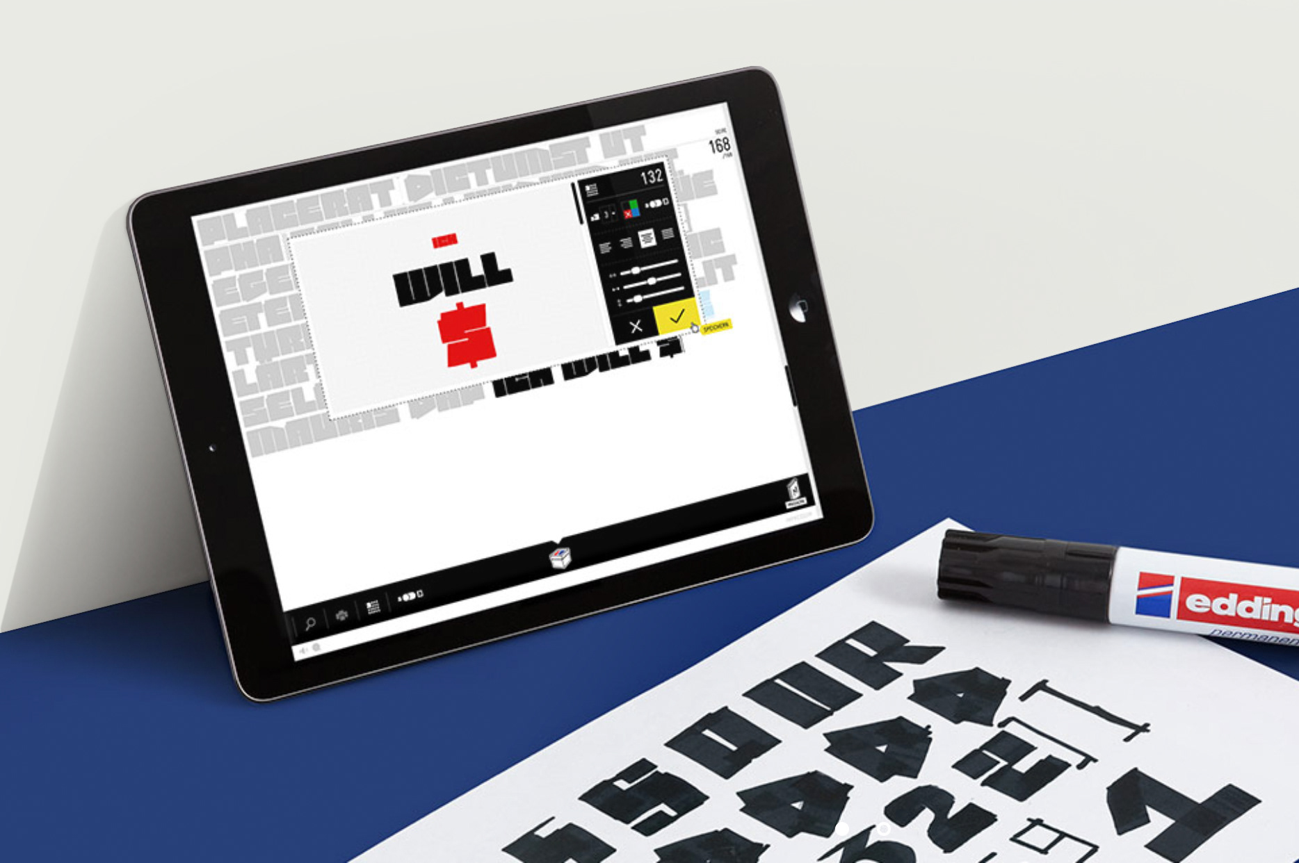 Together with Swiss design legends Büro Destruct we developed a font – inspired by the edding 850 permanent marker. That way we created a digital product extension. It was completely free. Once you’ve written something on the collaborative typo website, you could download the font – and use the edding 850 directly on your computer.